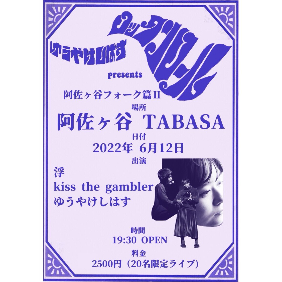 2022/6/12 "ロックンロール 阿佐ヶ谷フォーク篇Ⅱ"(弾き語り) 場所 東京阿佐ヶ谷TABASA 共演 浮, kiss the gambler