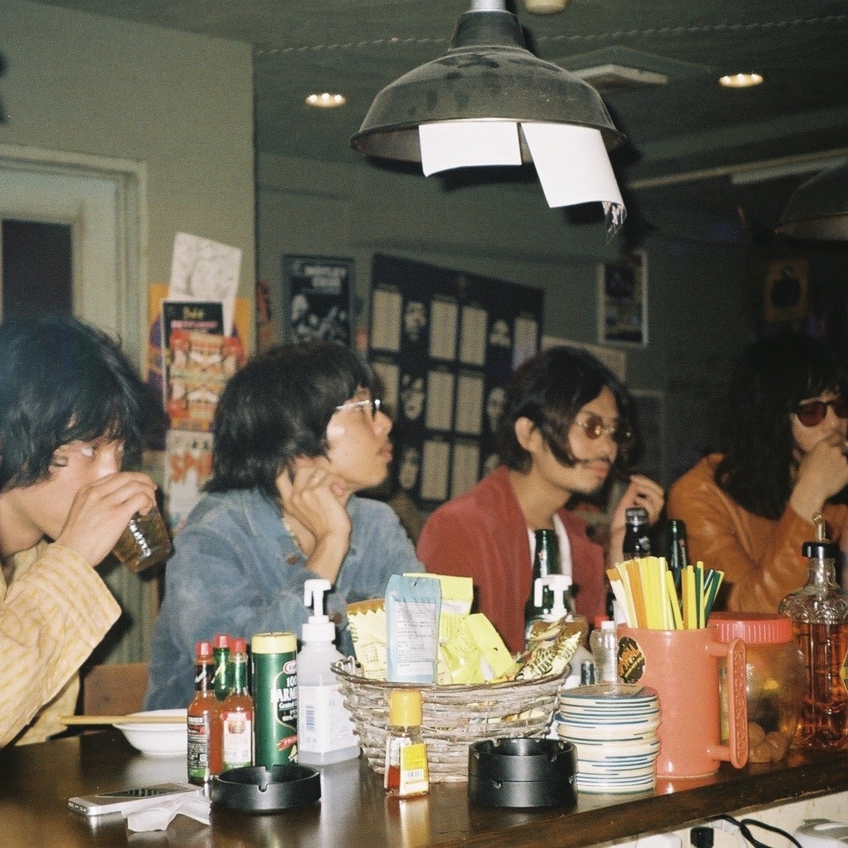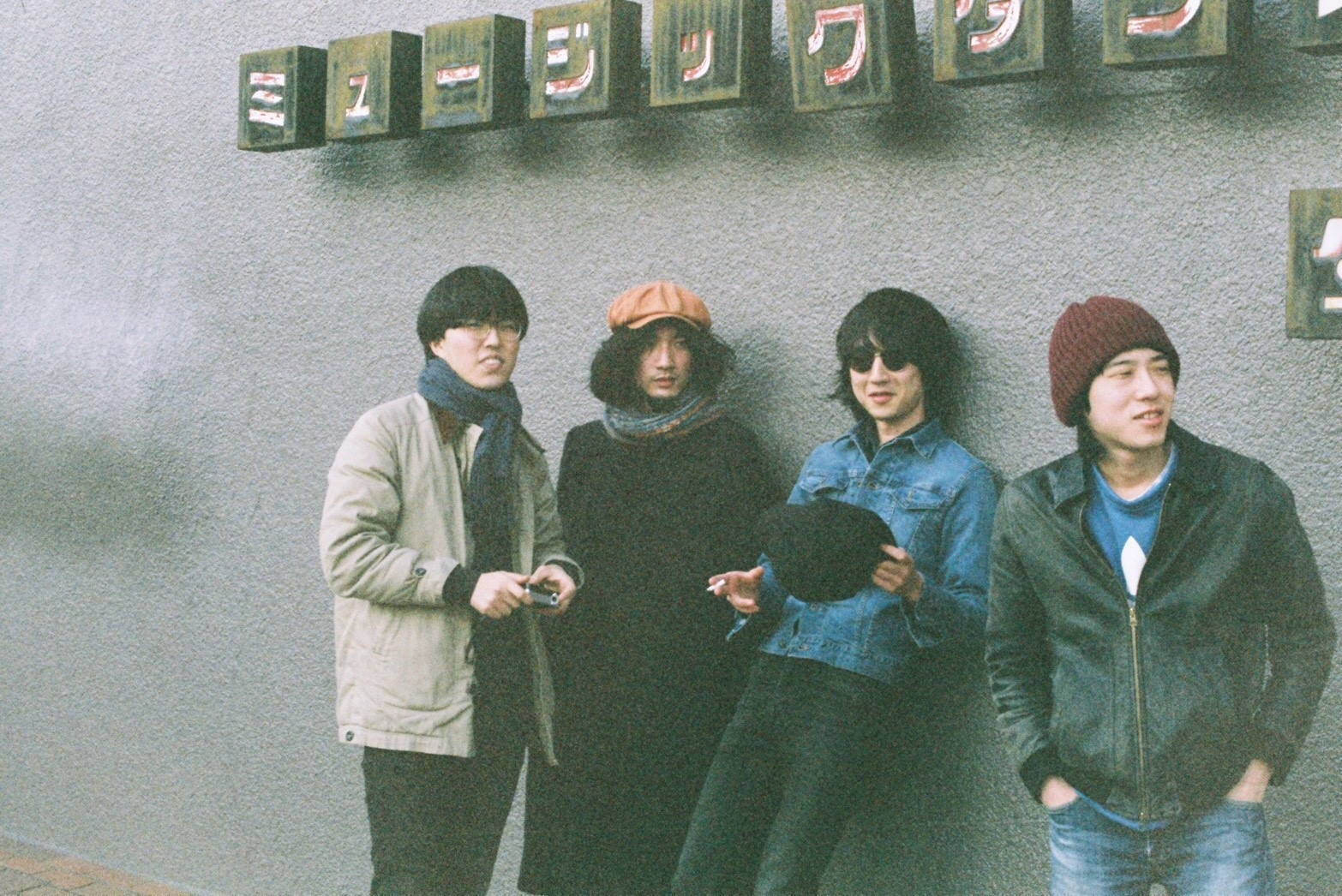 『二枚目』録音時のアー写撮影 左から加藤、林、中嶋、福田